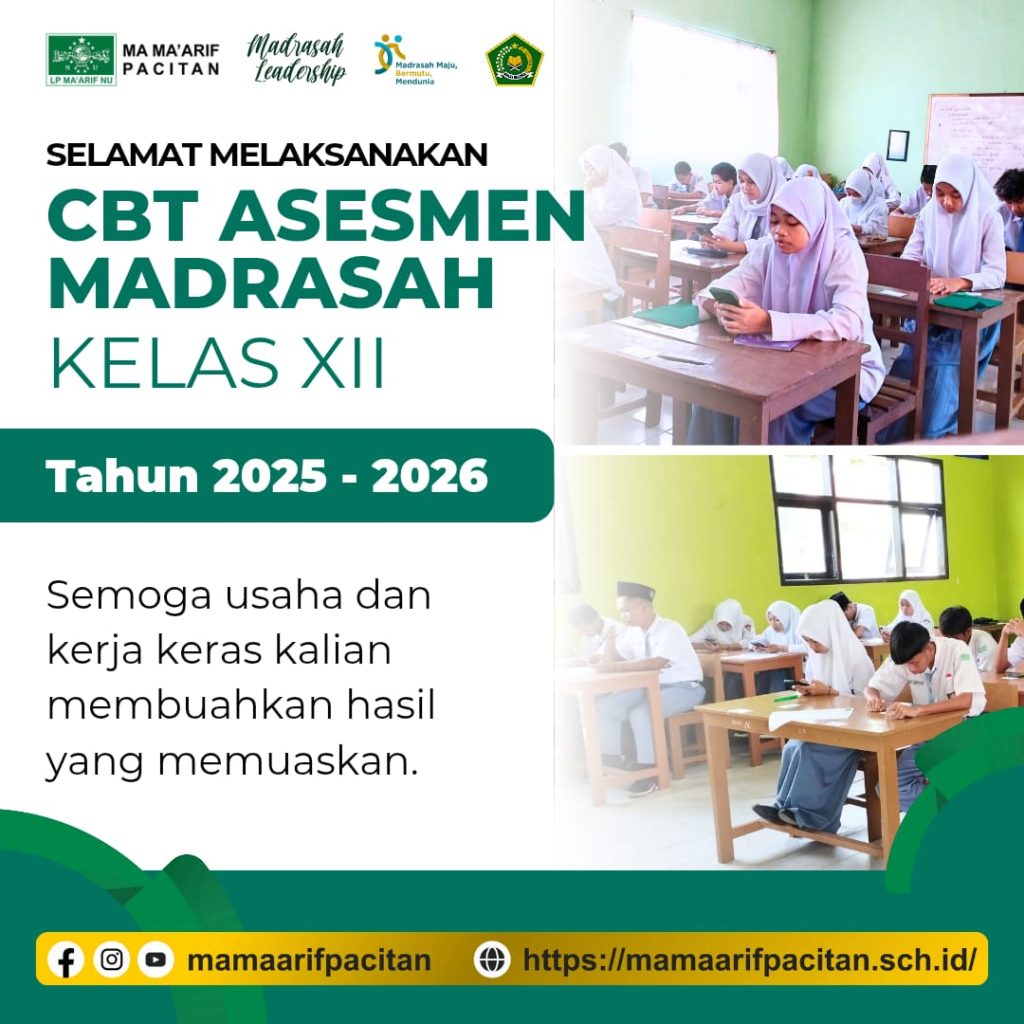 Ujian Madrasah (UM) adalah ujian terakhir untuk kelas XII. Tahun ini pelaksanaan UM di MA Ma’arif Pacitan menggunakan metode komputer. Siswa juga dapat mengerjakan melalui gawai yang mereka punya dengan aplikasi exambro. Soal-soal UM dibuat oleh guru-guru pengampu mata pelajaran dan dimasukkan ke dalam aplikasi moodle.