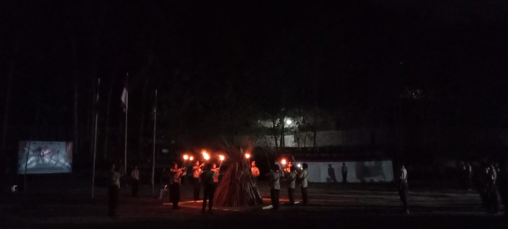 Puncak kegiatan kemah adalah api unggun dan pentas seni. Api unggun dinyalakan setelah obor-obor dasadarma menyala. Hal ini sebagai simbol semangat dari pramuka akan terus menyala dan berkorbar sehingga ikut memberikan kehangatan untuk sesama.