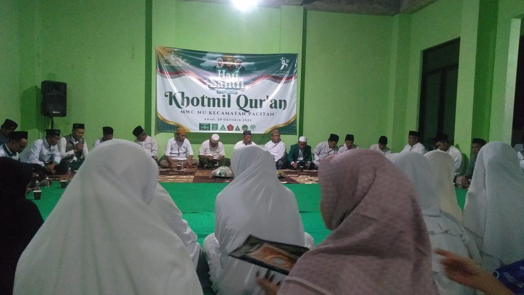 Acara pertama adalah khotmil quran yanng dilaksanakan pada tanggal 20 Oktober 2024 . Acara ini diprakarsai MWC NU Kecamatan Pacitan. Khotmil quran kali ini dirangkaikan dengan mahalul qiyam. Acara ini menjadi pembuka peringatan hari santri nasional tahun ini. Di acara ini, santri MA Ma’arif Pacitan bersama banom NU dan masyarakat berkumpul dan saling bersosialisasi. Di acara ini juga siswa/ santri belajar untuk saling menghormati.