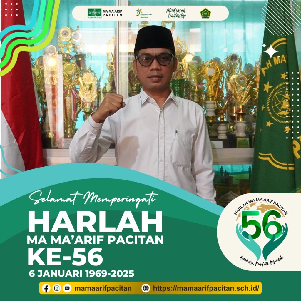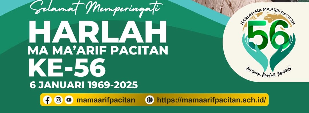 Pacitan- Rangkaian harlah (hari lahir) MA Ma’arif Pacitan akan diperingati mulai tanggal 6 sampai 24 Januari 2024. Dalam perayaan kali ini, ada logo dan tema tersendiri yang diusung oleh pengurus.