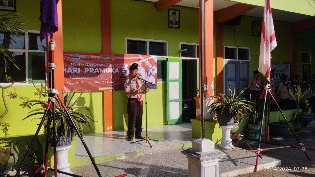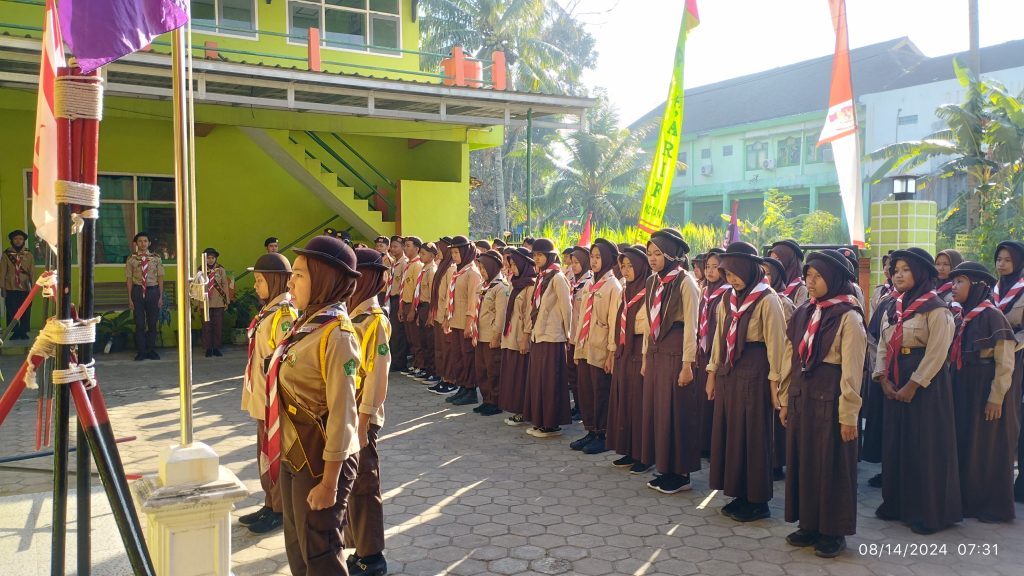 Pacitan, 14 Agustus 2024. Pramuka Pangkalan MA Ma’arif Pacitan menggelar upacara peringatan hari pramuka ke-63. Pramuka “Berjiwa Pancasila Menjaga NKRI” menjadi tema hari pramuka ke-63 tahun ini. Setiap anggota pramuka wajib memiliki jiwa Pancasila sehingga perilakunya merupakan pengaplikasian dari sila-sila Pancasila. Hal ini sesuai dengan visi yang ada di MA Ma’arif Pacitan yaitu Cakra singkatan dari Cerdas, Aktif, Kreatif, Religius, Aplikatif.